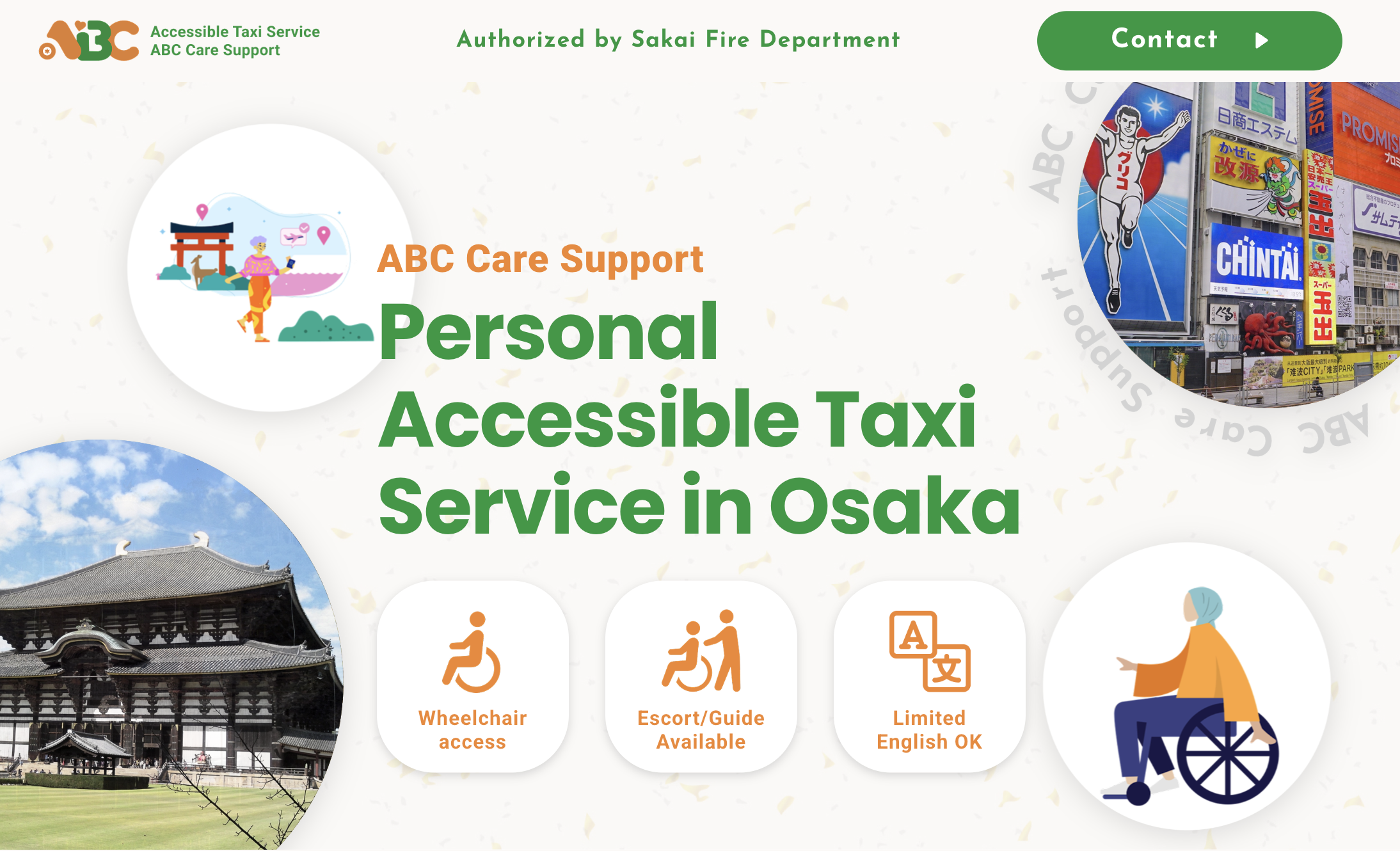 介護タクシー会社様のインバウンド向けのLP 2025 8/15 実績 2025年8月10日2025年8月15日 サイトURL 介護タクシーABCケアサポート|大... Accessible Taxi Service in Osaka|ABC Care Support A certified female care worker provides safe, wheelchair-accessible taxi service in Osaka. Available for airport transfers, sightseeing, long-distance trips, an... 制作物概要 概要 介護タクシー会社様のインバウンド向けのLP 目的 お問い合わせ ターゲット ・要介護認定を受けていない高齢者・一時的に介助が必要な方・障害者手帳をお持ちでない方・妊婦さん(マタニティータクシー)・空港送迎を利空港用する方・インバウンドの旅行者 デザインイメージ 使いやすさが優先、文字見やすく、色もハッキリしている ABCケアサポート様について 大阪府堺市に拠点を置くABCケアサポート様は、介護タクシー事業者様です。車いすやリクライニング車いす、ストレッチャーでの乗車が可能で、身体が不自由な方や移動が困難な方の外出をサポートしています。 通院や入退院、お買い物はもちろんのこと、ご旅行や冠婚葬祭への付き添いなど、介護保険では対応できない幅広いニーズに応えています。特に、スタッフのりささんは、親身に寄り添う優しい対応で利用者様からも大変好評です。また、遠方にお住まいの家族に代わって病院への付き添いを行い、診察内容を報告するサービスも提供しており、安心して任せられる点が大きな強みです。 利用者様一人ひとりに寄り添った温かいサービスを心がけていますので、お困りの際はぜひ一度ご利用ください。 この度は、デザインをお任せいただきありがとうございました。 実績 よかったらシェアしてね! URLをコピーしました! URLをコピーしました! 腸活salon mil様_HP制作 介護タクシー会社様のHP 関連記事 介護タクシー会社様のHP 2025年8月10日 腸活salon mil様_HP制作 2025年8月10日